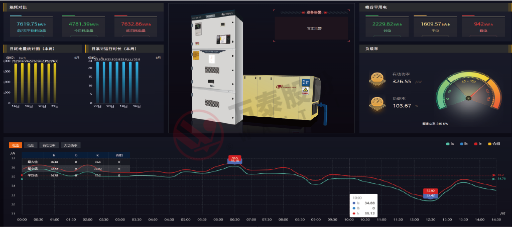 系統(tǒng)支持對煤礦重點設(shè)備的能耗數(shù)據(jù)實時監(jiān)測,通過可視化界面,展示實時電功率、當(dāng)月耗電、當(dāng)月耗電分布、MD監(jiān)控、?;鶊D、當(dāng)月能耗排行情況;實時顯示設(shè)備三相電壓、三相電流、功率和電度數(shù)據(jù),自動生成設(shè)備的電流、電壓、功率、電度的歷史趨勢曲線;通過電能流向分析將各個層級的用電情況用一張圖直觀展現(xiàn)出來,可以看到不同的區(qū)域在節(jié)約能源方面的差異;同時可以追溯支路能耗、區(qū)域能耗、電表能耗等數(shù)據(jù),進行統(tǒng)計分析;對設(shè)備的用電情況進行統(tǒng)計,生成電能年報表、月報表、日報表,進行當(dāng)年此前各月同期環(huán)比分析、各類用能占比統(tǒng)計分析,切實提供能耗管理效率和數(shù)據(jù)精準性;
