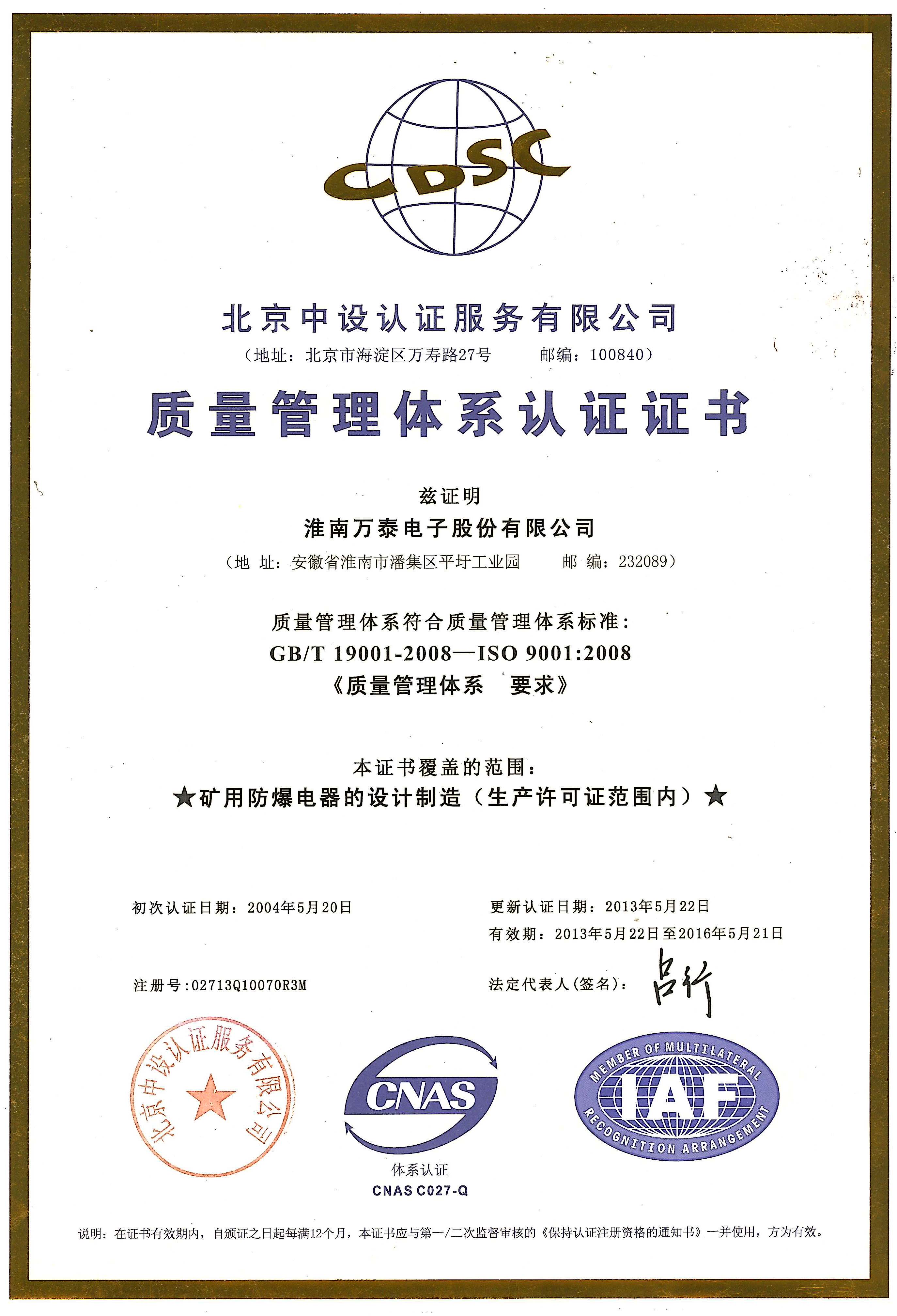 ISO9001-2008質(zhì)量體系認(rèn)證證書(shū)