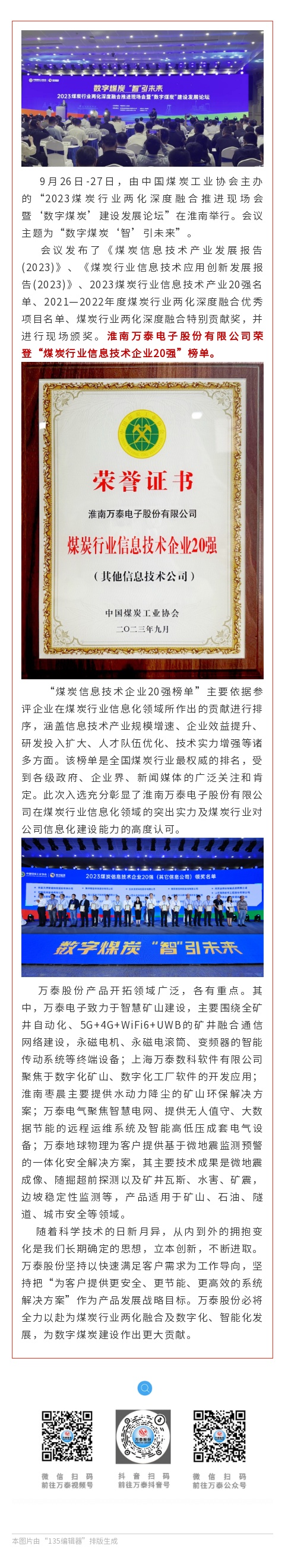 喜報(bào)!萬(wàn)泰股份榮登“煤炭行業(yè)信息技術(shù)企業(yè)20強(qiáng)”榜單