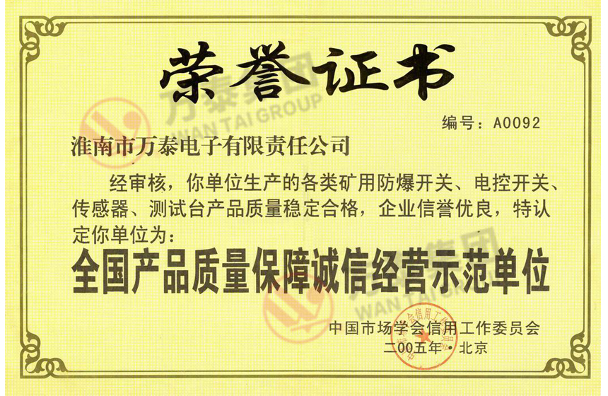 • 全國(guó)產(chǎn)品質(zhì)量保障誠(chéng)信經(jīng)營(yíng)示范單位