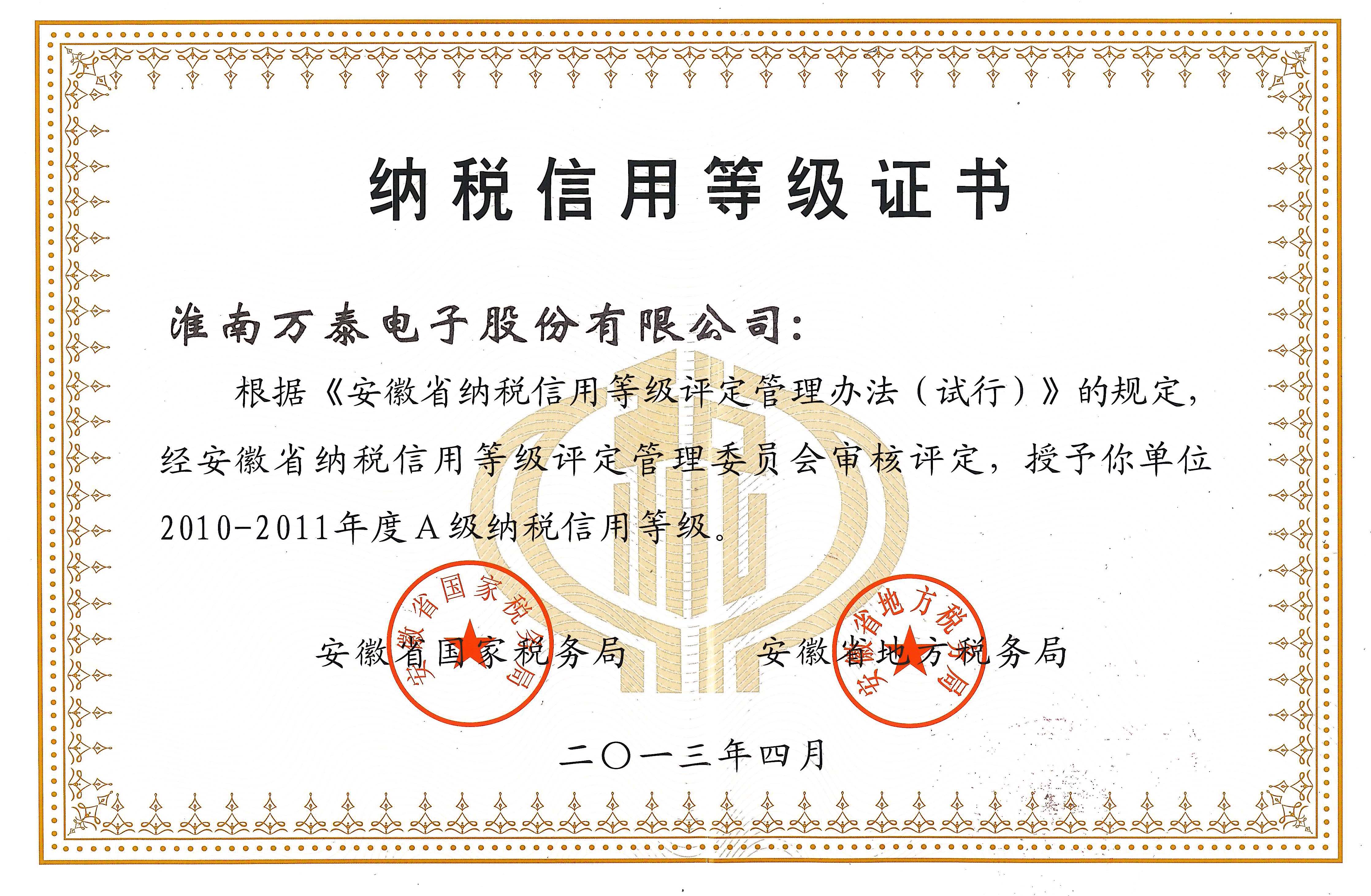 • 納稅信用等級(jí)證書(shū)