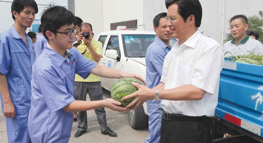 劉書記講話指出,感謝萬泰電子對推動潘集區(qū)經(jīng)濟的發(fā)展所做出的突出貢獻,感謝廣大萬泰員工對企業(yè)的發(fā)展所付出的辛勤勞動。講話在員工熱烈的掌聲中結(jié)束。隨后廣大員工和隨行人員一起開始搬運西瓜和礦泉水,每個員工臉上都洋溢著幸福的笑容。