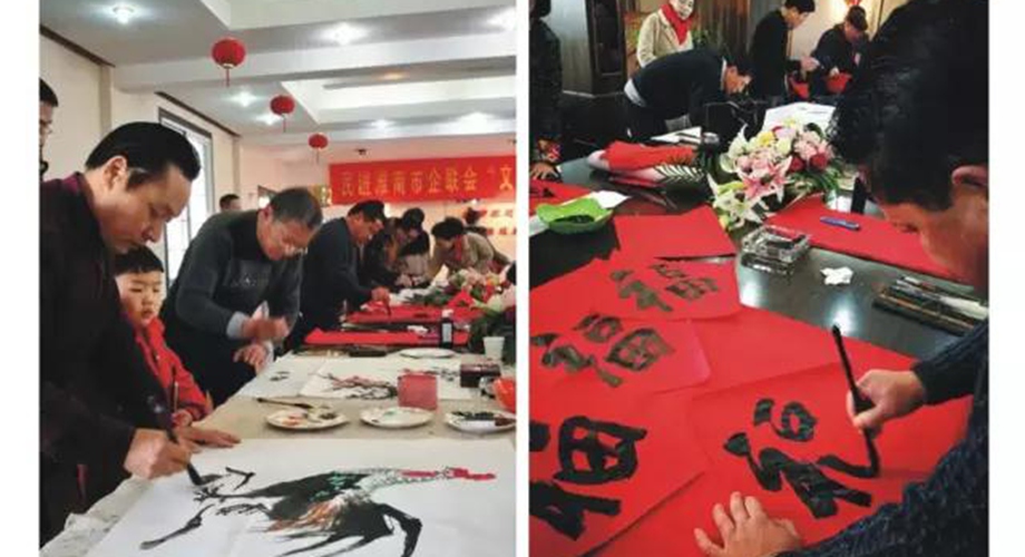 企聯(lián)會(huì)誠邀淮南市諸多書畫名家一同為萬泰職工送上新春對(duì)聯(lián),各位書畫家現(xiàn)場揮毫潑墨,筆力雄健,氣韻生動(dòng)!活靈活現(xiàn)的年畫,美滿吉祥的春聯(lián),喜慶紅火的福字,洋洋灑灑,一揮而就,饋贈(zèng)員工。